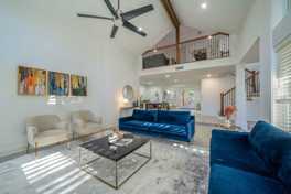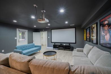 This breathtaking home just outside Houston offers proximity to many great attractions while being in a quiet neighborhood perfect for getting some rest. It offers tons of space for a large group with 5 spacious bedrooms and 4.5 bathrooms. High ceilings and amazing upgrades give this home a real WOW factor. You’ll have access to many great extras, including a fun movie room and a huge glittering pool.