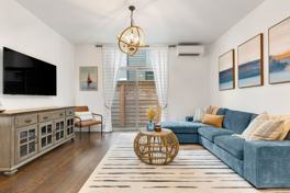 Immerse yourself in the relaxing, light-filled ambiance that complements the modern design of this inviting townhouse. The open-concept living area on the first floor creates the perfect setting for fun gatherings, while the second floor offers another relaxing family space with a futon-style sleeper sofa. The townhouse features a fully equipped kitchen with stainless-steel culinary tools, a charming rooftop terrace on the fourth floor with a BBQ and fire pit, and two snug bedrooms that promise comfort and style. The master bedroom is on the third floor and the second bedroom is on the second floor.