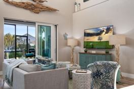 The Hidden Lagoon is designed with comfort and convenience in mind. Each of the four bedrooms is meticulously furnished with crisp linens and luxurious soft furnishings. The fully stocked kitchen is a paradise for culinary enthusiasts, equipped with a plethora of utensils, dishware, a Keurig K cup coffee machine, and a Ninja coffee maker. Adjacent to the kitchen, a stunning dining table seats up to six guests, with easy access to the outdoor kitchen and pool patio for al fresco dining. The living area features five flat-screen smart TVs for your entertainment.