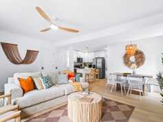 Inside, you’ll find a modern and stylish interior, recently remodeled and professionally designed, with all the comforts you need. The home features four beautifully decorated bedrooms, two with cozy queen beds and two additional bedrooms with comfortable full beds, offering plenty of room for everyone to relax and recharge. After a day of exploring, unwind in the hot tub or enjoy a meal in the fully equipped kitchen. The three full bathrooms are clean, modern, and fully stocked for your stay. The cozy living area invites you to relax with comfortable seating and a large TV, while the outdoor space provides a backyard perfect for outdoor dining or lounging.