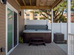 The home offers a large kitchen with ample counter space, perfect for preparing meals. Entertainment options include an old-school Nintendo 64 with Mario and 007, as well as a wireless PacMan game. Relax outside in the spacious hot tub, with enough seating for 7.