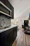 As you step inside, you'll be welcomed by a thoughtful mix of contemporary and rustic decor. The minimalist design, featuring sleek hardwood floors and elegant lighting fixtures, creates a chic, stylish ambiance. In the bathroom, you'll find essentials like a hair dryer, cleaning products, shampoo, body soap, and shower gel. The bedroom and laundry area offer soft towels, bed sheets, comfortable bed linens, hangers, and plenty of clothing storage space. A washing machine and dryer are available for your use. For entertainment, there's a flat-screen TV and high-speed Wi-Fi, along with a dedicated workspace. The kitchen and dining area are equipped with a refrigerator, microwave, induction stove, pots and pans, oil, salt, pepper, dishes, silverware, a coffee maker, and a hot water kettle.