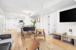 Step into this bright and modern apartment, thoughtfully designed to be your comfortable and stylish home away from home. The spacious master bedroom features two comfortable queen-size beds. The flexible den is a cozy and private space with another comfortable queen-size bed, perfect for extra guests. The comfortable living area is a welcoming space with a cozy sofa bed and a TV, ideal for unwinding after a day of exploring. The kitchen is fully equipped with modern appliances and all the essentials you need to prepare meals. Includes a washer and dryer for a hassle-free stay. A clean and modern full bathroom is stocked with starter supplies.