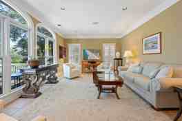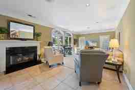 The property features a spacious living area perfect for relaxation and socializing. The open floor plan enhances the sense of space, making it ideal for gatherings and entertaining.