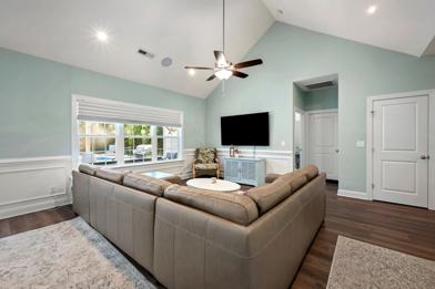 Inside, you’ll find all the amenities you need for an enjoyable stay. Unwind with a drink, fire up the grill, or challenge friends to a friendly game of ping pong. The large-screen TV is ideal for catching the game, and the screened porch offers views of the 4th green at Heritage Club. The house features a private, fenced-in pool, perfect for relaxing after a day on the course or beach.