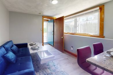 Welcome to the Suite at House of L, a beautifully renovated 1-bedroom apartment located close to Boston. This suite features a modern kitchen with a granite peninsula and an open living space. The light and bright apartment includes a queen-size bedroom and a private bathroom, along with off-street parking for one car. The apartment is situated on the lower level of a home, with ceilings that are 6 feet 10 inches high.