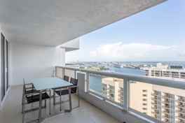 This apartment features a gorgeous year-round hot tub, a state-of-the-art gym, and on-site gourmet dining. It also includes 400Mbps high-speed Wi-Fi and a spacious balcony overlooking Biscayne Bay.
