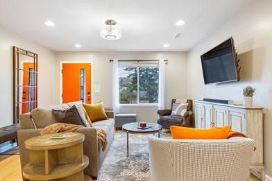 The kitchen is stocked with a full range of kitchen appliances, cookware, silverware, servingware, spices, coffee and tea. All beds are outfitted with high quality mattresses, linens and a comfortable duvet. For your entertainment, there is a smart TV in each bedroom and living room. This home also features central A/C for the Seattle summer heat and an on-site washer and dryer for your laundry needs.