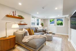 Guest access will be granted via a smart lock, and there are eight steps leading up to the front door porch. The home has stairs to entry and is not handicap friendly, with a narrow interior staircase leading down to the lower level. Street parking is not allowed on this block on the home’s side of the street as it is a fire lane, and citations may be given. This is not a pet-friendly home, with a $1000 fine and possible eviction for unauthorized pets. Strictly no parties and events, quiet hours between 10 pm and 8 am, no smoking or vaping of any kind anywhere on the property including outdoor areas, no digital piracy, and no shoes in the home, with a $500 fine per violation.