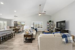 Enjoy sunset cocktails around the fire-table or while dipping in the pool, with a large TV on the patio for entertainment. This home provides all the comforts you need, including all linens, bath and pool towels, and free Wi-Fi. The garage accommodates one car, with additional parking available in the driveway.