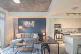 Relax in this 1-bedroom unit designed with a socially and environmentally conscious living environment in mind. The living space features an innovative open-concept design that blends the living and dining areas with the kitchen, creating a modern and sleek living experience. The living room is ideal for enjoying the company of friends and family while watching a good movie or show. The fully equipped kitchen allows you to easily prepare your favorite meals.