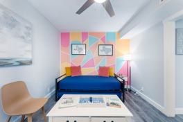 This is a second-floor apartment, and stairs must be climbed to access it. There is video surveillance monitoring the exterior building hallways and parking lot for security purposes. The neighborhood reflects a diverse range of socio-economic backgrounds, including a transient population. No smoking is allowed, subject to a $200 fine for violations. No parties or events are allowed, and a maximum of 4 guests is permitted. Check-in is any time after 4pm, and check-out is by 11am. A $75 initial late fee applies for guests that do not check out by 11am, with an additional $40 per hour thereafter.