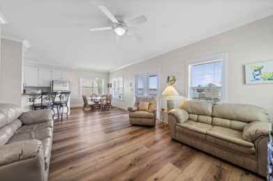 Inside, the home features a bright and airy open-concept layout with stylish coastal décor and thoughtful touches throughout. The spacious living area flows effortlessly into the dining space and modern kitchen, making it easy to gather, cook, and connect with loved ones. Large windows flood the space with natural light and bring the beauty of the outdoors in. After a day of beachcombing, fishing, or exploring the nearby parks and attractions, unwind on the deck or enjoy a quiet evening in the comfortable indoor space. Whether you're planning a long vacation or a weekend escape, "About Time" offers a relaxing and rejuvenating environment that feels like a true home away from home.
