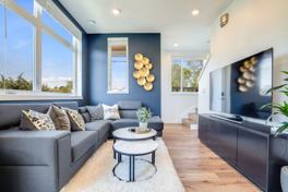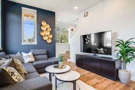 As you step into your spacious home, you'll find that every detail has been thoughtfully curated to ensure your memorable and exceptional stay. Sunlight filters through large windows, casting a warm glow on the contemporary furnishings, hardwood flooring, and elegant decor. Sink into the oversized sofa in the living room, which is the perfect spot to unwind after a long day of sightseeing. The fully equipped kitchen awaits for whipping up a quick breakfast or making a satisfying dinner, complete with a microwave, stove, oven, Keurig coffee maker, double-door refrigerator/freezer, and dishwasher. Share memorable meals on the dining table in the heart of the main floor’s living area, creating a unique and inviting place for delicious homemade feasts.