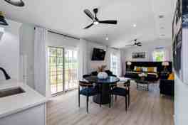 The Grand Augustine is where history and luxury collide, featuring custom craftsman finishes, historic decor, and plush furniture. The main home includes a spacious custom kitchen with luxury finishes, a dining room with vintage charm, and a picture-perfect living room with a smart TV. The first floor hosts a king bedroom with an en-suite bathroom and private pool deck entry, a queen bedroom with an en-suite bathroom, a half bathroom, and a private workspace. The second floor offers a bedroom with two twin beds, a king bedroom, a full bathroom, and an open loft area with a twin daybed and twin trundle. The garage apartment includes a studio with a king bed, a full kitchen, and a small attached bedroom with a full bed and twin trundle.