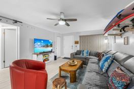 Welcome to your perfect beachside adventure pad! This bright, ground-floor 2-bedroom, 2-bathroom retreat is just a five-minute walk from Cocoa Beach. Inside, you’ll find an open living area and a fully equipped kitchen for effortless, home-cooked meals. Fast Wi-Fi keeps everyone connected, and both bedrooms are furnished for restful nights. Unwind on your private back porch with a cozy seating area after a sun-soaked day. Ideal for families, couples, or small groups seeking a relaxing beach escape, this apartment is minutes from Downtown Cocoa Beach, great dining, shops, Ron Jon Surf Shop, and Port Canaveral.