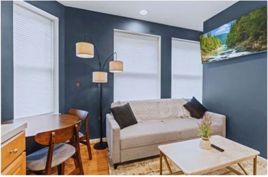 Experience refined city living in this stylish 2-bedroom apartment, ideally located in Philadelphia’s iconic Rittenhouse Square—one of the city’s most vibrant and upscale neighborhoods. Step into a bright, thoughtfully designed space that balances comfort and sophistication. The open-concept living area features a plush sofa bed and flat-screen TV, creating the perfect spot to relax after a day of exploring. Adjacent is a sleek dining area with a modern table—ideal for enjoying meals, takeout, or catching up on work in a laid-back setting. Unwind in the serene primary bedroom, complete with a luxurious queen-sized bed, soft premium linens, ample closet space, and tasteful decor that creates a tranquil retreat. Tailored for flexibility, the second bedroom includes two comfortable bunk beds—perfect for families, kids, or friends traveling together. Its cozy, functional layout ensures a restful night’s sleep for everyone. Cook with ease in the fully equipped modern kitchen, featuring stainless steel appliances, quartz countertops, and generous cabinet space. Whether you’re preparing a full meal or just your morning coffee, everything you need is at your fingertips. The contemporary bathroom includes a spacious walk-in shower, a vanity with storage, and stylish fixtures. Fresh towels and essential toiletries are provided to make your stay effortless.