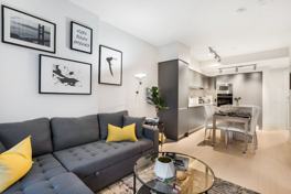 Enjoy a stylish experience at this centrally located apartment, situated in Vancouver's beautiful Olympic Village area. This home is in proximity to significant interest points around the city, including Downtown Vancouver and the seawall. The apartment itself is designed with a clean-cut furnishing composition and tasteful color blocking, granting a refreshing feel. The patio offers excellent views of Vancouver and its surrounding areas.