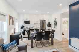 Experience a space built for real-life stays, where home comforts meet design-forward living. This suite features three spacious bedrooms, an open-concept living area, and thoughtful touches throughout. It includes a fully equipped kitchen with full-size appliances, Canadian-made Endy mattresses in every bedroom, Smart TVs, bright, modern interiors designed for comfort and style, 2 full bathrooms with walk-in showers, hotel-quality towels, toiletries and hairdryers, high-speed Wi-Fi, dining for six and comfortable lounge seating, in-suite laundry and a dedicated workspace, central air conditioning and secure self-check-in.