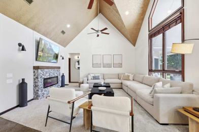 This meticulously designed home features high-end finishes and thoughtful touches. The fully equipped kitchen boasts ample counter space and features top-of-the-line appliances and cookware including a Ninja blender, Panini grill, toaster, microwave, dual ovens, coffee machine, waffle maker, ice maker, and iced tea maker. Amenities include high-speed Wi-Fi, a washer and dryer, linens, and towels. Enjoy the saltwater pool, hot tub, fire pit, and expansive outdoor areas surrounded by nature. The backyard has a second, greater fenced-off area that is also ideal for walking.