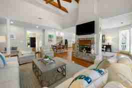 This vacation rental offers a tranquil escape with stunning water views from the back porch. Inside, you'll find a spacious and inviting atmosphere, with ample room for you and your guests to spread out and relax. The highlight of the living and dining area is the double-sided fireplace, creating an ambiance of warmth and comfort that's perfect for cozy evenings spent indoors. This house features a living room, dining room, TVs, wireless internet, and a double-sided fireplace. The beds are premade and a luxury linen package is included with sheets, hand towels, bathmats, washcloths, and bath towels.