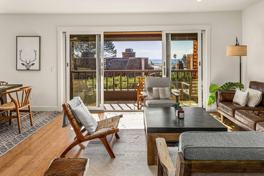 Enjoy ocean breezes and breathtaking water views from this exquisitely remodeled 3-bedroom, 2.5-bath townhome, nestled in the resort-style community of Sea Point. Thoughtfully designed, this home features luxurious upgrades, including bamboo hardwood floors, stainless steel appliances, a gas fireplace, custom built-in closets in all bedrooms, and a fully finished garage. Skylights flood the space with natural light, enhancing its bright and airy feel. The unit features two patios and a balcony.