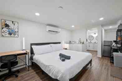 Feel at home in this charming casita, fully furnished and equipped with a kitchen. Enjoy the convenience of a private entrance, a gated property, and a mini split system for your comfort. The living area features a desk and chair, perfect for work or study, and a smart TV for entertainment. Fast WiFi ensures you stay connected, and a washer and dryer are included for your convenience.