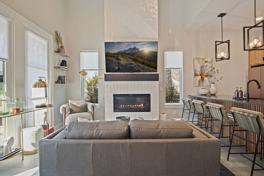 This modern retreat features a chef-inspired kitchen, gourmet coffee bar, and curated interiors that blend luxury with home-like warmth. The open-concept living area is bright and cozy, featuring stylish décor and comfortable seating. The fully equipped kitchen boasts modern appliances and sleek countertops. A dedicated laundry area with a washer and dryer is available.