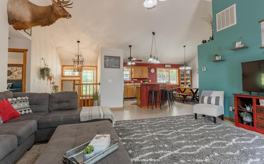 This is a newly acquired home so we are still getting everything set up. There have been a few changes we have not gotten photos of yet, one of the rooms has a toddler bed in addition to a queen. There are also a couple desks to work on now. While we're waiting for a custom dining table, we have a 6ft folding table with 8 seats available in the dining area. There are also 4 stools at the bar top on the island. Let us know if you need more seating and we are happy to accommodate! There is a second living space on the bottom level with 3 bunk beds that we can add a second air mattress to as well.