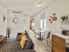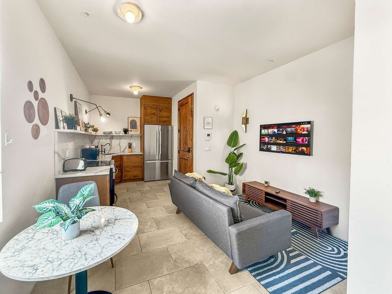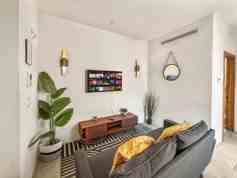 Step into the perfect blend of modern comfort and urban charm in this beautifully appointed 1-bedroom, 1-bathroom apartment, ideally situated in one of Philadelphia’s most vibrant and desirable neighborhoods. The bedroom is your private oasis, featuring a luxurious queen-sized bed outfitted with soft linens and plush pillows to ensure restful, uninterrupted sleep. Ample storage space and tasteful décor create a cozy yet functional atmosphere. Relax and recharge in the open-concept living room, where stylish furnishings and a warm, welcoming ambiance invite you to kick back with a book, stream your favorite shows, or simply savor a quiet moment. Natural light flows in through large windows, enhancing the airy, modern feel of the space. The fully equipped kitchen is a dream for home chefs and casual cooks alike, featuring stainless steel appliances, plenty of cabinet space, and all the essentials you need to prepare everything from a quick breakfast to a gourmet dinner. The sleek and contemporary bathroom is outfitted with high-end fixtures, a spacious vanity, and thoughtful storage to make your daily routine feel refreshingly effortless.