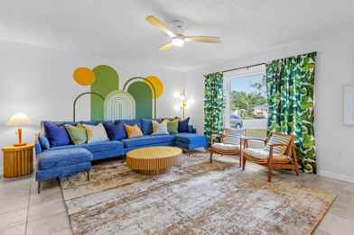 Experience the ultimate Florida getaway in this spacious, modern home designed for up to 14 guests. The main spaces include a chef’s kitchen with high-end stainless appliances, a large refrigerator, and coffee makers, along with a living room featuring a 65" smart TV and plush seating. The spectacular resort-style backyard offers a private pool, outdoor dining, BBQ grill, fire pit, putt putt, corn hole, and a giant Connect 4.