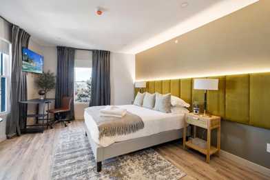 Feel at home in this bright and stylish studio, perfect for business travelers or those seeking a quick getaway. Ideally located just minutes from the town center and a 5-minute drive to the highway, this apartment offers easy access to NYC and local attractions. Enjoy a sleek, modern space filled with natural light, a cozy desk, coffee machine, and a brand-new kitchenette. With self-check-in and all the essentials, convenience is right at your doorstep.