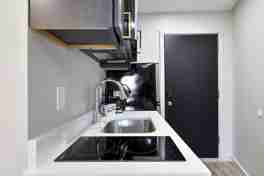 This fully furnished studio is equipped with everything necessary for a comfortable stay. The bathroom features hot water, shower gel, and essentials like towels, bed sheets, and toilet paper. You'll find a hair dryer, cleaning products, shampoo, conditioner, and body soap at your disposal. For entertainment, a TV is available, and heating and cooling options include air conditioning and heating. Stay connected with Wi-Fi and take advantage of the dedicated workspace in a common area. The kitchen is fully equipped with a refrigerator, microwave, induction stove, hot water kettle, coffee maker, toaster, and wine glasses, as well as cooking basics like pots and pans, oil, salt, and pepper, and dishes and silverware.