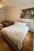 This fully furnished apartment includes a queen-size bed, sofa bed, TV, dining table and chairs. The fully equipped kitchen has everything you need to prepare your meals, though the stove is not functioning due to a gas company outage. AC will be installed around Memorial Weekend (window unit). A Roku Streamer Box is provided.