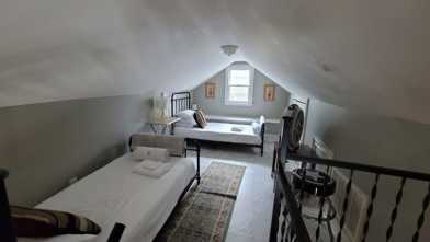 This newly-renovated historic home, just one block from Broadway, is perfect for families or friends. With open-concept living, space for 10 guests, and a large outdoor area, it’s ideal for gatherings. Lofted ceilings add brightness and space, and you can enjoy a full kitchen, large beds, quality linens, and towels.
