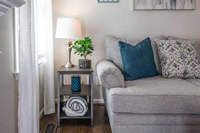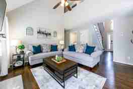 This home features modern finishes, a king-size bed in the master suite with a private bathroom and Smart TV, and two upstairs queen bedrooms with Smart TVs and hotel-quality linens. The fully equipped kitchen includes cookware, cooking basics, and a Keurig. Enjoy high-speed Wi-Fi throughout the home and a cozy living room with a decorative fireplace. A welcome tray with snacks and complimentary K-Cups is provided.