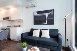 This new condo is very well located near the Bell Centre, just steps away from the Golden Square Mile’s attractions. It features 2 bedrooms with 1 queen bed, 1 double bed, and 1 bathroom.