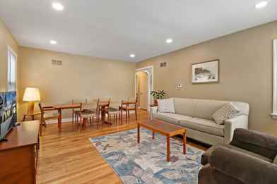 Nestled on a generously sized lot, this charming single-family residence offers a perfect blend of seclusion and convenience. Surrounded by mature trees and natural landscaping, the home enjoys exceptional privacy, making it an ideal retreat for relaxation and quiet living. Inside, you'll find a bright and inviting eat-in kitchen with ample cabinetry and space for a cozy breakfast nook or small dining table. The adjoining living and dining area provides a warm, open-concept layout, perfect for entertaining guests or enjoying quiet evenings at home. This home features two comfortable bedrooms and a well-appointed full bathroom. A spacious laundry room adds even more functionality, offering abundant storage solutions and room for organization.