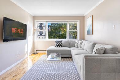 Experience Minneapolis living in this serene two-bedroom condo in the vibrant heart of Uptown. Step into a fully furnished haven featuring inviting sectional couches and a generous 65” Smart TV in the living room, complete with high-speed internet. Conveniently situated within walking distance to local restaurants, grocery stores, and easy access to the lakes. Ideal for extended stays, this condo offers the perfect blend of comfort and convenience.