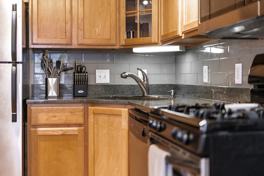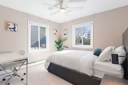 The bedrooms have queen-size beds and a complete workstation for work-at-home professionals. An updated kitchen, washer/dryer, free parking, air conditioning and fast Wi-Fi make this modern condo a perfect fit.