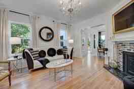 Welcome to the Great Gatsby Mansion, where you can sit on the "southern charm" front porch with its century-old stone coquina pillars and watch horse-drawn carriages meander by. Inside, the home accommodates up to 12 people with two fully appointed master suites, two additional large bedrooms, a bonus room, and 3.5 baths. The oversized modern kitchen with a walk-in pantry and a separate bar room leads out to the 30 ft heated pool, perfect for year-round swimming. The impressive staircase serves as a picturesque backdrop for wedding and family photos.