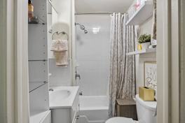 This apartment features an intimate living room with a work from home area, a spacious bedroom, and an eat-in kitchen with full appliances and everything a household needs for tasty home-cooked meals. There is a washer and dryer in the basement of the building easily accessible through the beautifully maintained backyard.