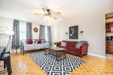 Smoking and vaping are prohibited inside the building, with a $250 fine for violations. No pets are allowed in the unit, and violations will result in a $600 fine. No parties or gatherings are permitted. Please do not take the building sensor cards or fobs upon check-out, as missing fobs will incur a $100 replacement cost. Late check-out without prior agreement will result in an extra cleaning and inconvenience fee starting at $200. The building was constructed in 1963, and the air conditioning and heating are controlled by the building, affecting the temperature in the condo. Fans and space heaters are provided during transitional weather months. This is a residential building, so please keep noise to a minimum, especially between 21:00 and 9:00. The building's high-rise nature means you will have neighbors, and we cannot take responsibility for external factors such as smoking smells from other units.