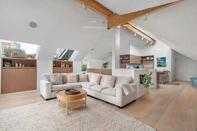 Welcome to this unique townhouse, where Scandinavian style meets modern comfort. This home is full of character, featuring stunning wood beams and vaulted ceilings that create an inviting and spacious atmosphere. Cozy up by the fireplace in the living area, complete with a comfy sectional perfect for relaxing. The master bedroom offers a serene retreat, providing a peaceful escape at the end of the day. Ideal for the whole family, this home combines style and comfort in a truly unique setting.