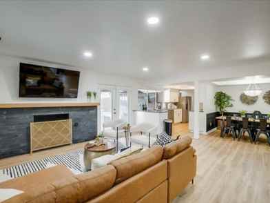 This modern home, recently renovated and immaculately designed, offers a perfect blend of style and comfort. The sleek and homey décor creates a welcoming atmosphere for your stay. Complemented by a breathtaking outdoor space, the grand pool and brand-new hot tub make it ideal for unwinding. The backyard is fenced with a private gate that opens to nature, providing a true sense of tranquility right outside your door. Perfect for large families or groups, this home ensures peaceful moments with seamless and memorable experiences.