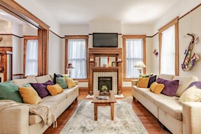 Welcome to this historic gem, a captivating home built in 1907 that seamlessly combines its original charm with modern updates. Step back in time and embrace the character of the three original bedrooms, while also reveling in the thoughtful conversion of three additional rooms into cozy sleeping quarters. With ample space to accommodate up to 14 guests in the beds and on the two sleeper sofas, this home is perfect for large groups and families seeking a truly inclusive experience. The various sleeping arrangements cater to both adults and children, ensuring everyone has a cozy spot to rest and recharge after a day of exploration. You'll find convenience and functionality throughout the space, including two bathrooms that provide ample facilities for everyone. The full kitchen is a culinary haven, allowing you to prepare delicious meals and create lasting memories around the dining table. Outside, the expansive backyard beckons, offering ample space for your family to stretch out and enjoy the fresh air. Whether it's a game of catch, a picnic under the shade of a tree, or simply lounging with a book, the outdoor area provides a tranquil escape from the hustle and bustle of everyday life. One of the bedrooms containing a twin bed can only be accessed through the bedroom with the king-size bed. Rest assured, this arrangement offers privacy, as it has its own door. This unique configuration adds a touch of charm to the home and provides an intimate space for those who prefer to stay together.