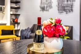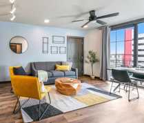 This thoughtfully designed apartment offers a retreat with plush amenities, providing the perfect respite after exploring the city's vibrant attractions. Enjoy amenities such as Wi-Fi, air conditioning, heating, a washer and dryer, a flat-screen TV, walk-in closets, and a dining area. The microwave also functions as a convection oven.