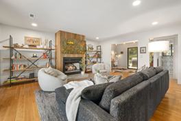 Enjoy this home’s cozy living room with a fireplace and a fully stocked kitchen with a coffee station (grinder, scale, and Mocha Master). Outside, enjoy a fenced-in peaceful outdoor space including a large, covered patio with lounge seating and dining, and a cedar sauna. The open-concept living room, kitchen, and dining space create the perfect space for comfortable, memorable gatherings. The living room features a large Smart TV with all your favorite streaming channels, plush seating, large windows, a gas fireplace, and a cocktail station. The backyard oasis is furnished with seating, a dining table, grill, a hammock, string lights, and a fire pit.
