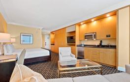Indulge in the refined comfort of this spacious studio suite, meticulously designed for your utmost relaxation and convenience. The suite boasts a luxurious king-size bed and a cozy sofa, creating a welcoming atmosphere for unwinding. The open-concept living area provides ample space for both relaxation and work, ensuring a seamless experience.