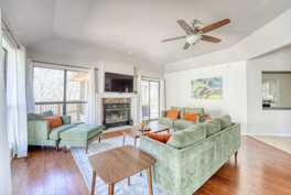 This property features a fully stocked kitchen, fast Wi-Fi, and a washer/dryer. Relax in the open-concept living room with a gas fireplace, 50" smart TV, and board games. The fully equipped kitchen offers stainless appliances, a coffee bar, blender, toaster, cooking basics, and spices. Two full bathrooms feature shower/tub combos with quality toiletries and plush towels.